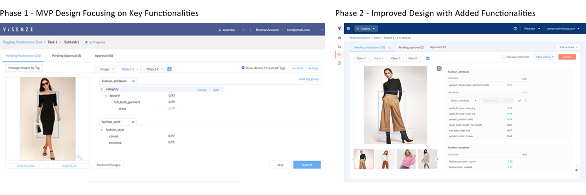 Following, there was a few rounds of interaction with ViSenze's client to understand their current moderation workflow and the different roles involved. Three key roles were identified: