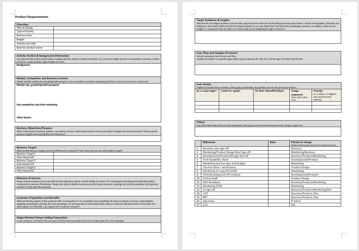 Before: product requirements were verbalised by product managers or reused business presentation deck for communicating requirements to designers. This lacked details that designers were looking for such as user stories and flow. After: