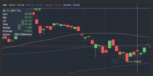 A calculated price line that smoothes out the average prices of open, high, low , close and/or combination of them, leading to a graph line that indicates the direction of the long-term trend.