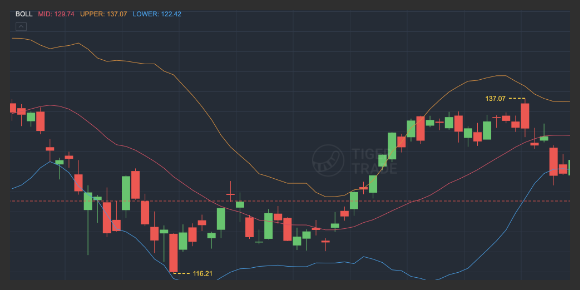 A technical tool that measures volatility based on contraction and expansion of 2 price bands. When the price bands compress, price undergoes consolidation. The longer the price band stays narrow, the stronger its potential expansion. Traders may anticipate for price congestions, using the top band to buy into bullish breakouts or sell into an anticipated downwards price reversal to the mean, and bottom band to sell into bearish breakouts or buy into an anticipated upwards price reversal to the mean.